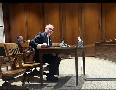 ILLEGAL FIREWORKS - State Rep. Rodney Elliott testifies before the Joint Committee on Public Safety and Homeland Security at the State House on Jan. 20, 2024, in support of his bill H 3634 on Fireworks