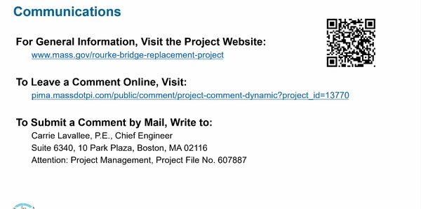We appreciate your engagement in this important project and your input. We look forward to continuing to work with you as MassDOT advances the Rourke Bridge replacement design.
